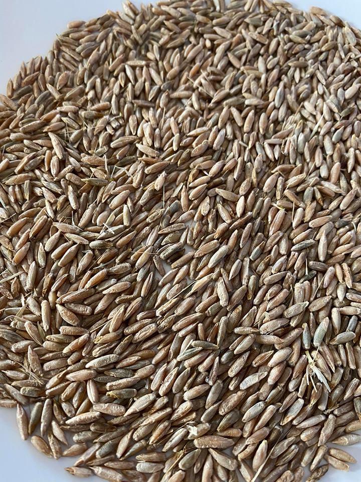 This is perhaps the greatest perennial grain currently in existence — and we're thrilled to be able to offer it for sale. Developed by Tim Peters, this perennial cereal rye is the product of years of breeding involving the wild perennial known as "Mountain Rye" (Secale montanum) and normal cereal rye (Secale cereale), which is typically an annual or biennial. This plant behaves differently in different environments, but it is generally best planted in the fall for a first harvest the following summer. It can range in height from a few feet to taller than a person. It seems the best method for growing is to sow the plants rather thickly in a well-prepared bed so that they develop a thick mat of roots and prevent weeds from growing. One patch can survive and produce for many years.