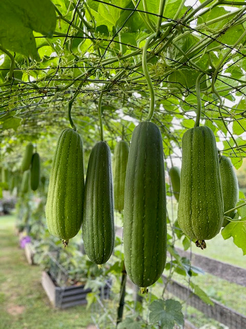 GROWING TIPS: Start plants indoors 2 to 4 weeks before last frost. Plant out once soil begins to warm, a couple weeks after last frost. Provide a good strong trellis, for luffahs like to climb, and ideally they will be laden down with heavy fruit (which don't start getting lighter until they dry). Allow fruits to remain on plant until they dry, or harvest at frost and take inside to a well-ventilated place for them to continue ripening.