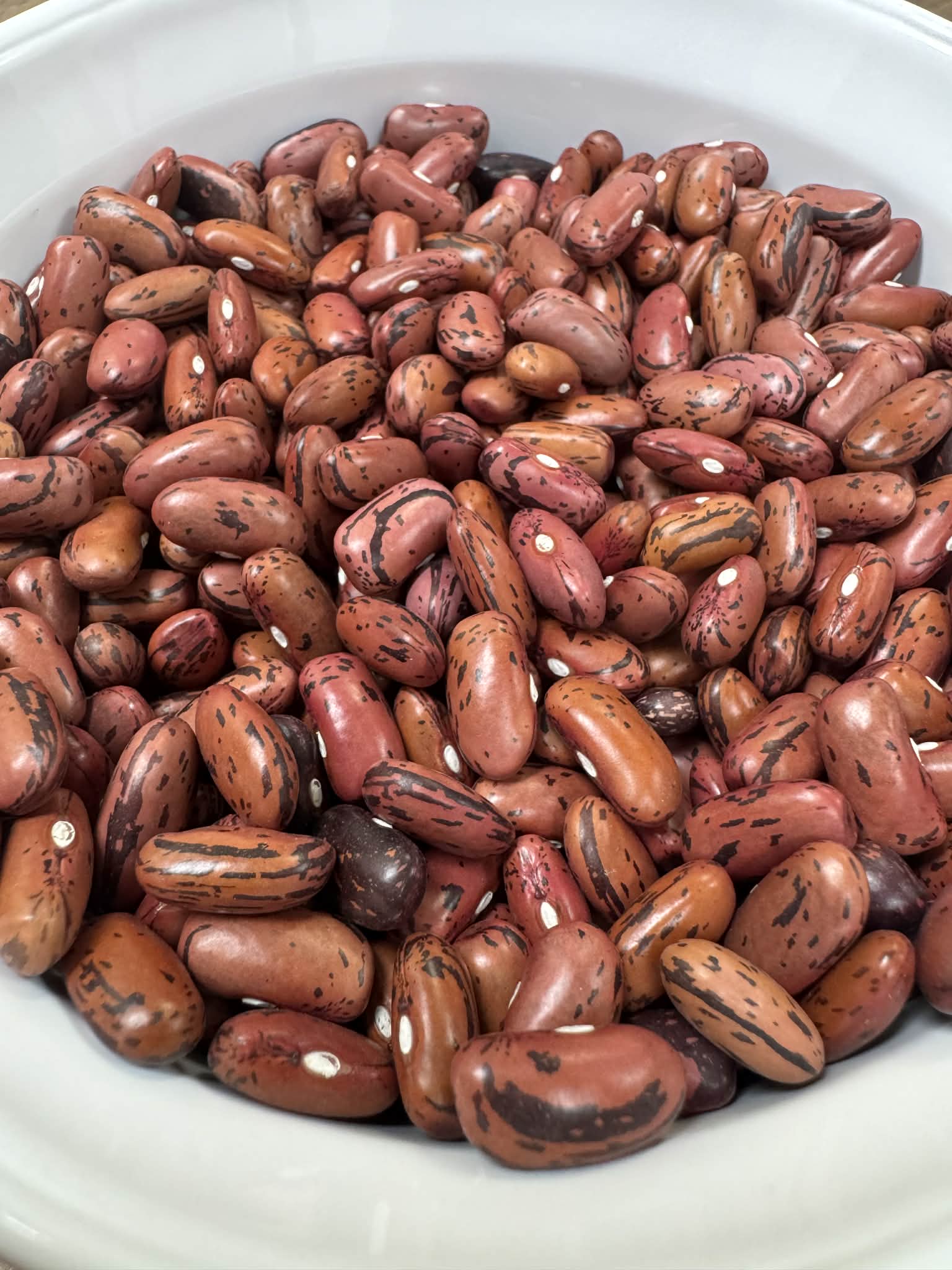 Rosso di Lucca' is a beloved heirloom bush bean from the city of Lucca in Tuscany (Italy). The seeds have a gorgeous rosy-pink color with sparse dark maroon dappling (and, as happens with many dappled beans, occasionally the reverse shows up sometimes too). The large beans, similar in size and shape to kidney beans, have a creamy texture & rich flavor. Try it in Pasta e Fagioli! Easy to direct seed.