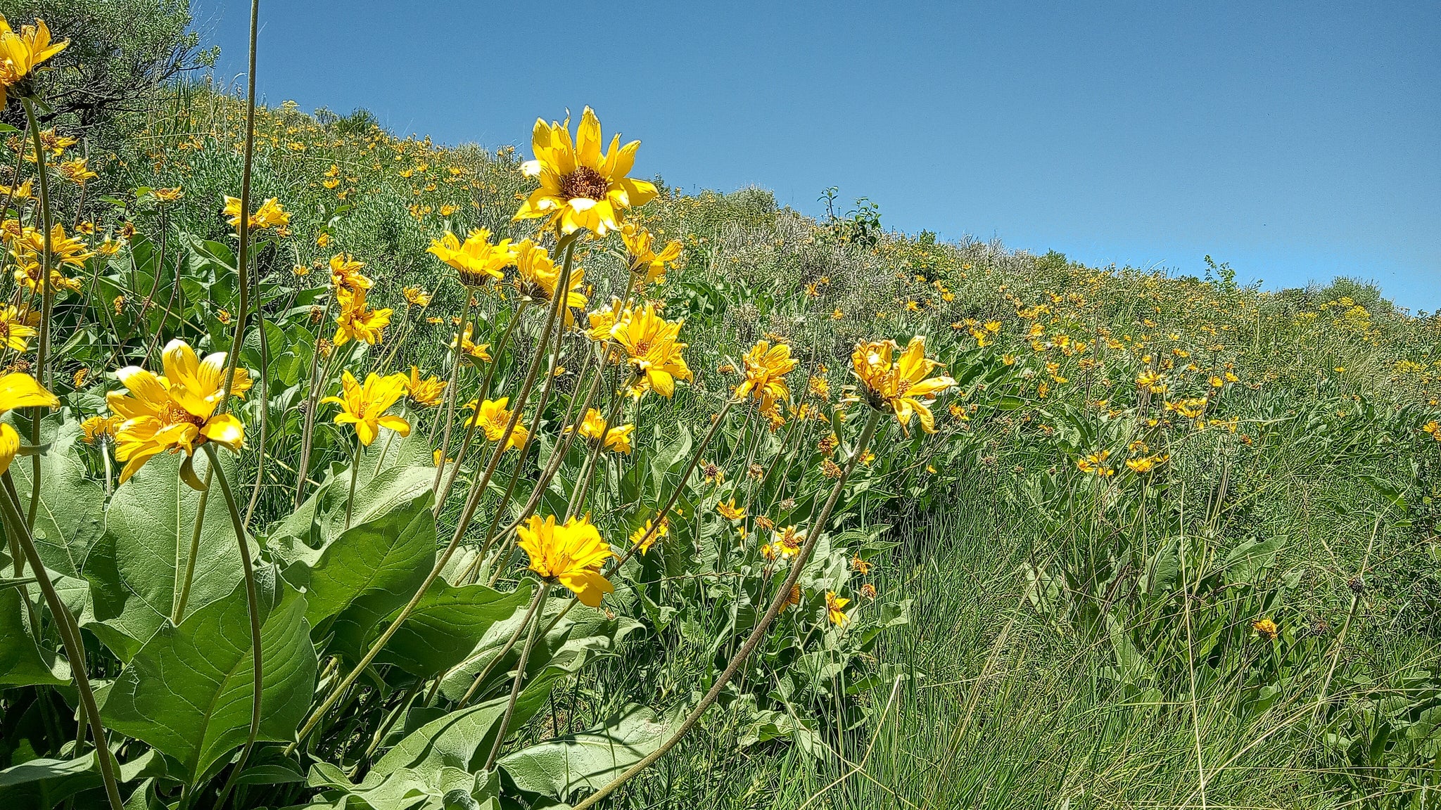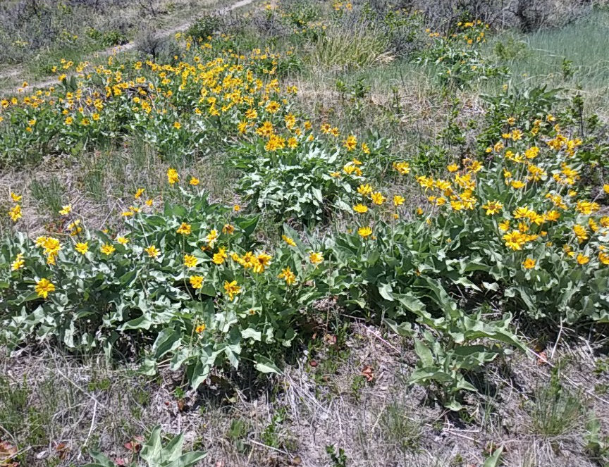 hot and rain runs scarce. Collected from the dry slopes of my 6th generation family-farm, this population reflects life in alkaline, silty-clay soil with low fertility — a habitat typical for the species across much of the Intermountain West. Once established, plants persist for decades, drawing water from deep roots and feeding pollinators each spring. Arrowleaf balsamroot invites patience — germination and first blooms may take time — but it rewards the grower with resilience, fragrance, and the luminous joy of early spring color."