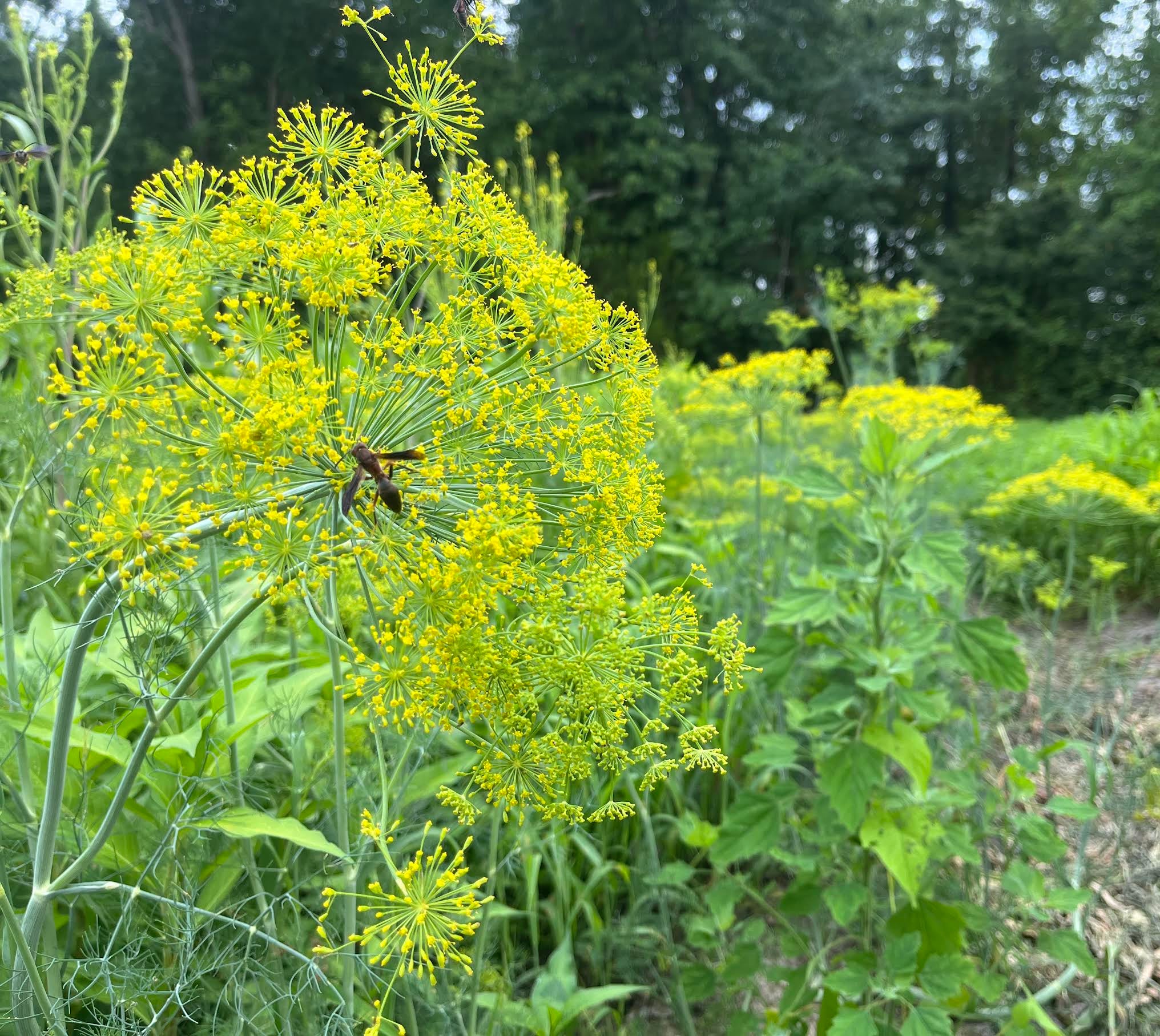 But we do know that it is one awesome dill! Tall and robust, with rich flavor, a good amount of frondy leaves, and lots and lots of flowers and seeds, we imagine this dill was selected over a long time by people who prize it for pickling. Those copious flower-heads and seeds both are essential ingredients in Ukrainian-style pickles — and not just for pickled cucumbers, but also beets, cabbage, carrots, green beans, tomatoes, snake melons, and even mushrooms and summer squash. Dill also goes great in a range of soups and stews, from mushroom-barley to borscht to brisket, and is often cooked with fatty fish like salmon.
