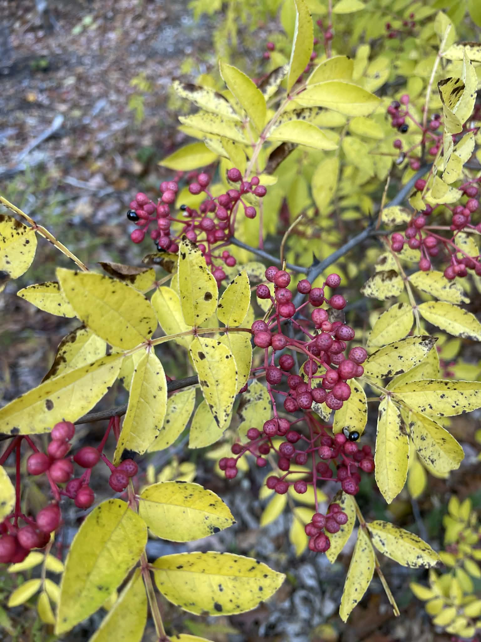Also called Chinese prickly-ash, this shrub or small tree produces the deliciously spicy/numbing Szechuan peppercorn, indispensable in some Chinese cookery. A few other closely related species also produce Szechuan peppercorns as well. Native to eastern China and Taiwan, this species is hardy to at least Zone 6 and above. It may grow to nearly 25 feet tall, but can also be pruned to remain more manageable. The whole fruit, composed of black seeds inside and rough red-brown shell that naturally splits open, is what is dried and used in Chinese cooking, either whole or powdered (though often it is only the shell that's sold). It can be used as a table seasoning, replacing black pepper, or in the kitchen. Roasting apparently brings out even more flavor. The plant is also considered medicinal, with a resin from the bark and roots being used as a tonic and stimulant.