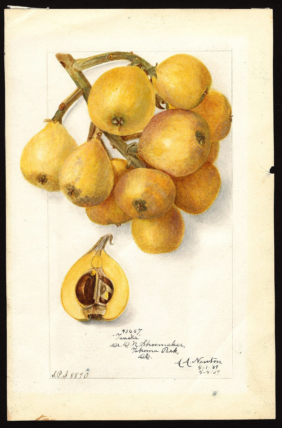 NOTE: The images here are all in the public domain, including the ten beautiful pomological illustrations from over a century ago, each depicting different varieties (whose names can be found bottom left). These were done by a few different artists, whose signatures can be found in the bottom right corner of each image, often with initials for their first and middle names. The artists were Deborah Griscom Passmore (1840-1911), Elsie Lower Pomeroy (1882-1971), Bertha Heiges (1866-1956), Royal Charles Steadman (1875-1964), Ellen Isham Schutt (1873-1955), and Amanda Almira Newton (1858-1943), all contributors to the USDA's invaluable Pomological Watercolor Collection, which is 7,600 paintings in all (roughly one-fifth were contributed by Deborah Passmore, the most prolific artist of the bunch, with Amanda Newton coming in second, responsible for roughly one-sixth of those 7,600 illustrations).